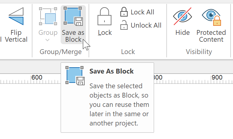 You can also create your own Blocks. To create a Block, select all the objects you want to be part of the block and the choose 'Save As Block' in the menu. You can even create your own categories!