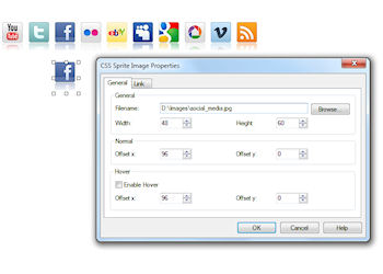 An image sprite is a collection of images put into a single image. Using image sprites will reduce the number of server requests and save bandwidth. Basically you combine all the images into one image and specify which part of this image will be visible by using the offset and width/height properties. Now you can use multiple instances of the CSS Sprite extension which all use the same image, each with different offset.