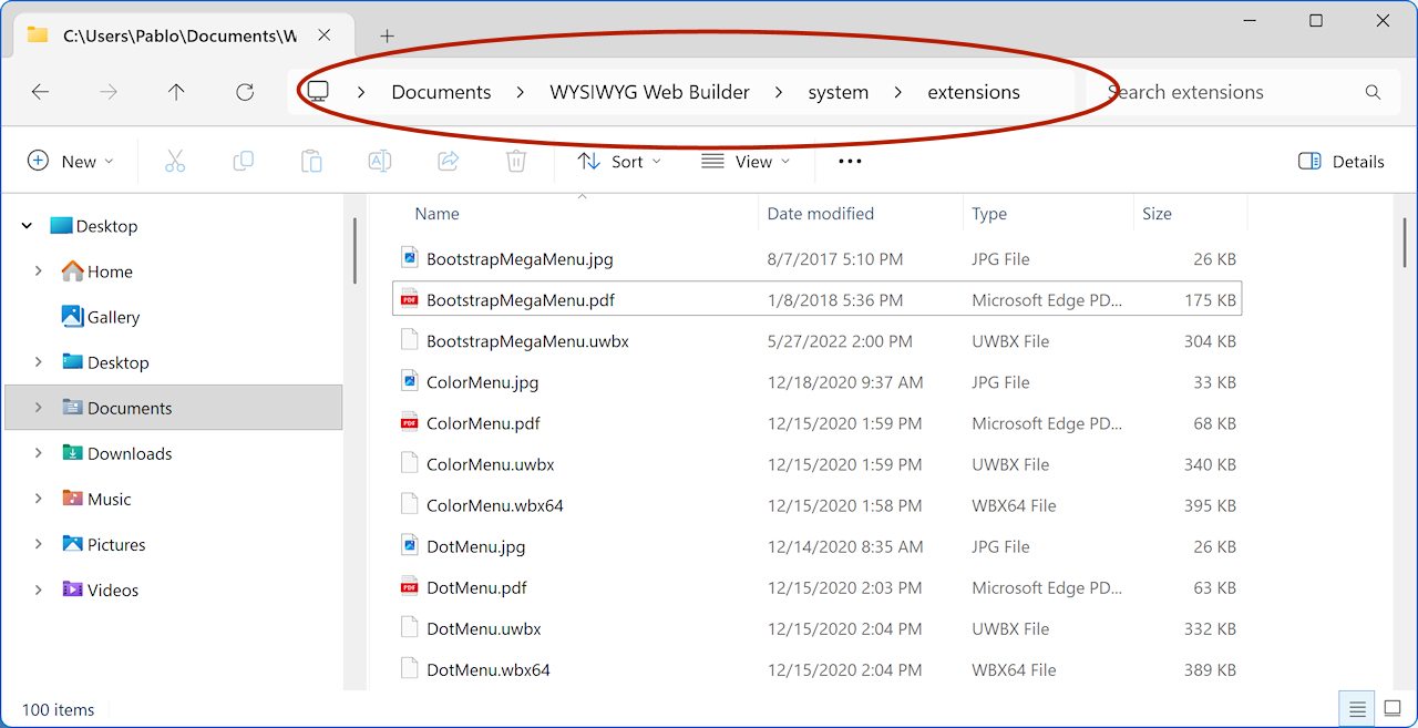 C:\Users\Your Name\Documents\WYSIWYG Web Builder\system\extensions