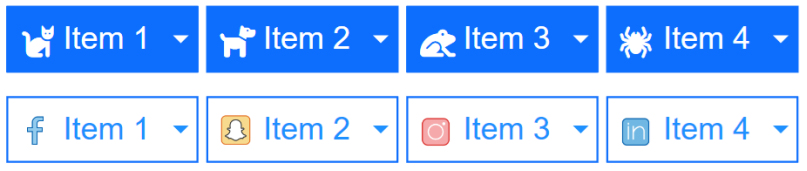 A Layer Menu is an advanced menu where the drop down menus are layers. This is great for creating advanced mega menus with images, text, form or any other object! The drop down layer can be positioned left, centered or at the right of the buttons. It is also possible to make the layer full width of the page. The menu also supports icons (Font Awesome, Material Icons, etc.) and custom images.