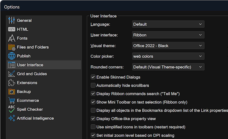 The Simplified Ribbon is a mix between the classic toolbar and ribbon. It shows the commands in a single line which not only brings a modern interface to WWB but also frees up space to show more of the page you are working on.