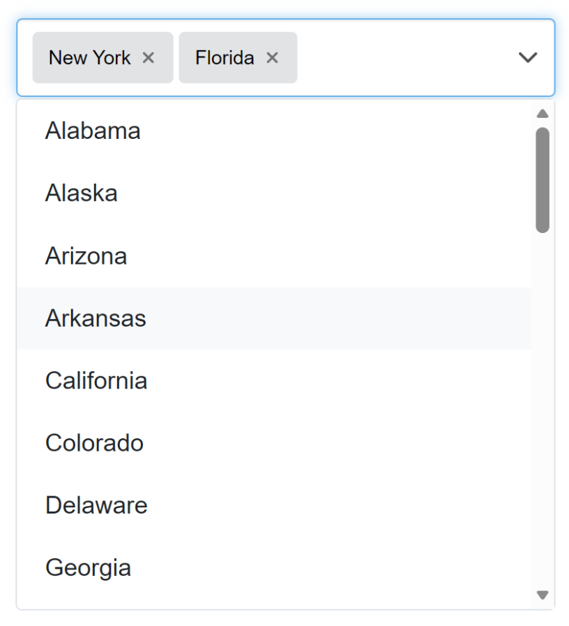 In addition to basic selection features, Select Multi allows you to customize how selected items (“chips”) behave and how the dropdown list responds. These extended options include: