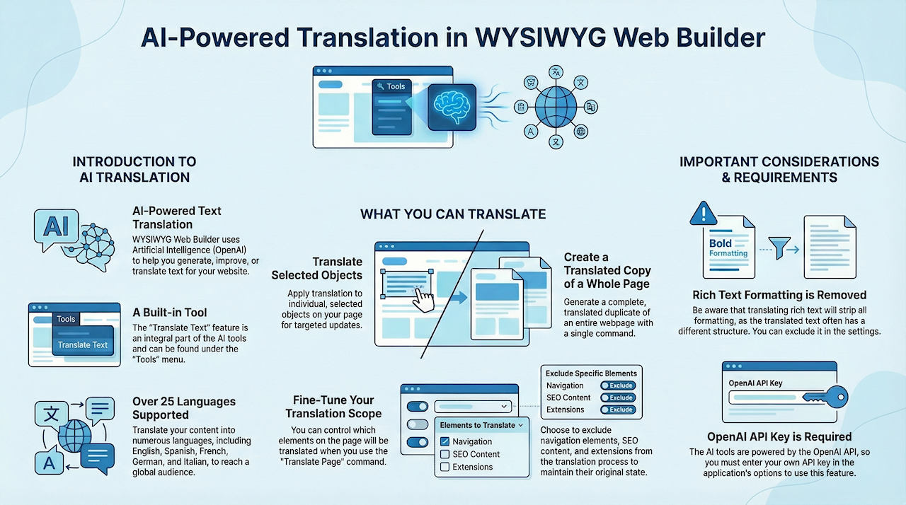 This feature is part of the new AI tools in WYSIWYG Web Builder, but translation is also available as separate tool.