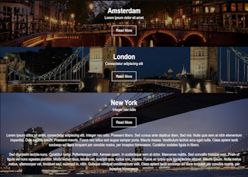 This extension implements a vertical gallery. Initially, the gallery shows the tile, subtitle and ‘Read More’ button. Clicking the button will expand the description. Vertical Gallery was designed to be used flexible layouts.