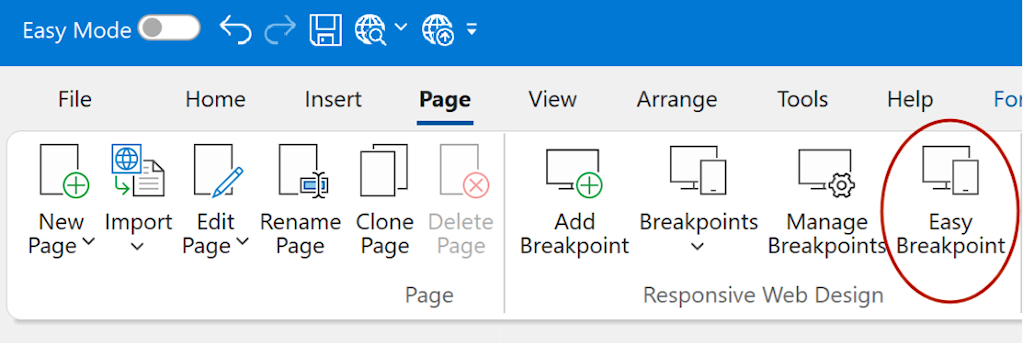 To set up an Easy Breakpoint, select an object and click Easy Breakpoint in the Ribbon or menu. This will open the Easy Breakpoint properties for that object.