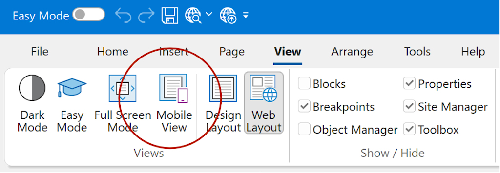 You can enable this mode via View → Mobile View to quickly toggle between Desktop and Mobile layouts.