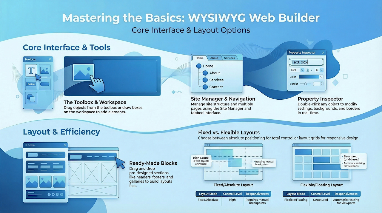 An introduction to the basic functionality of WYSIWYG Web Builder