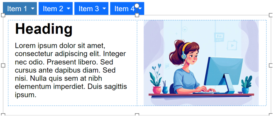 By default, layers use absolute positioning, meaning each object on the layer has a fixed location that you can freely move within the container. However, absolutely positioned objects are not responsive. When the browser is resized or the menu is viewed on smaller screens, this can lead to clipping or overlapping elements.