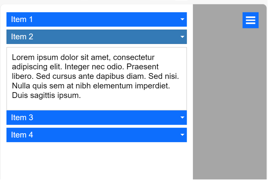 Overlay, displays an overlay menu covering the full page with ‘drill down’ layers.