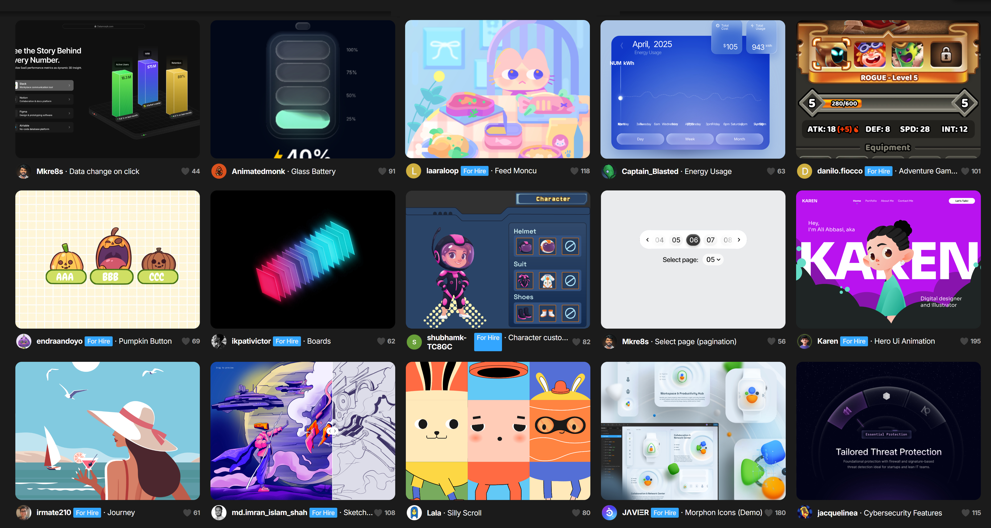 A huge selection of Rive animations can be found here: