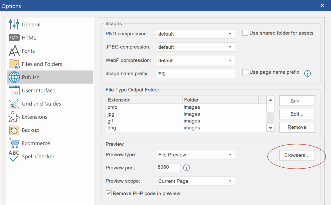 - New feature: Added “Include width and height attributes in images to prevent Cumulative Layout Shifts” option in Tools -> Options -> HTML. This specifies whether to include width and height attributes (width="800" height="600") in <img> tags in addition to CSS. This helps the browser to allocate the correct amount of space in the document while the image is loading. This may be useful to improve Google's lighthouse 'Best Practice' scores.
