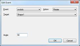 'Rotate' action to events. Now you can rotate any object (or even forms,