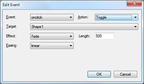 'Toggle' event action. Useful for toggling the visible state (show/hide) of an