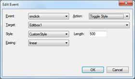 - New feature: Added 'Toggle Style' event action. Toggle between the current style and another style while animating the style changes. Triggering the event again will restore the previous style.