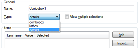datalist (HTML5) support to combobox. A datalist is a combination between a