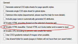 - New feature: Added ‘Enable HTML beautifier’ option. Formats HTML so it
