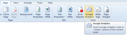 - New feature: Added a shortcut menu item to insert Google Analytics code in the <head> section of the page.