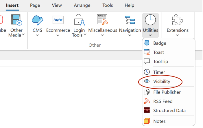 After dragging the Visibility object into the workspace, connect it to an element by selecting its ID from the Target Object dropdown.